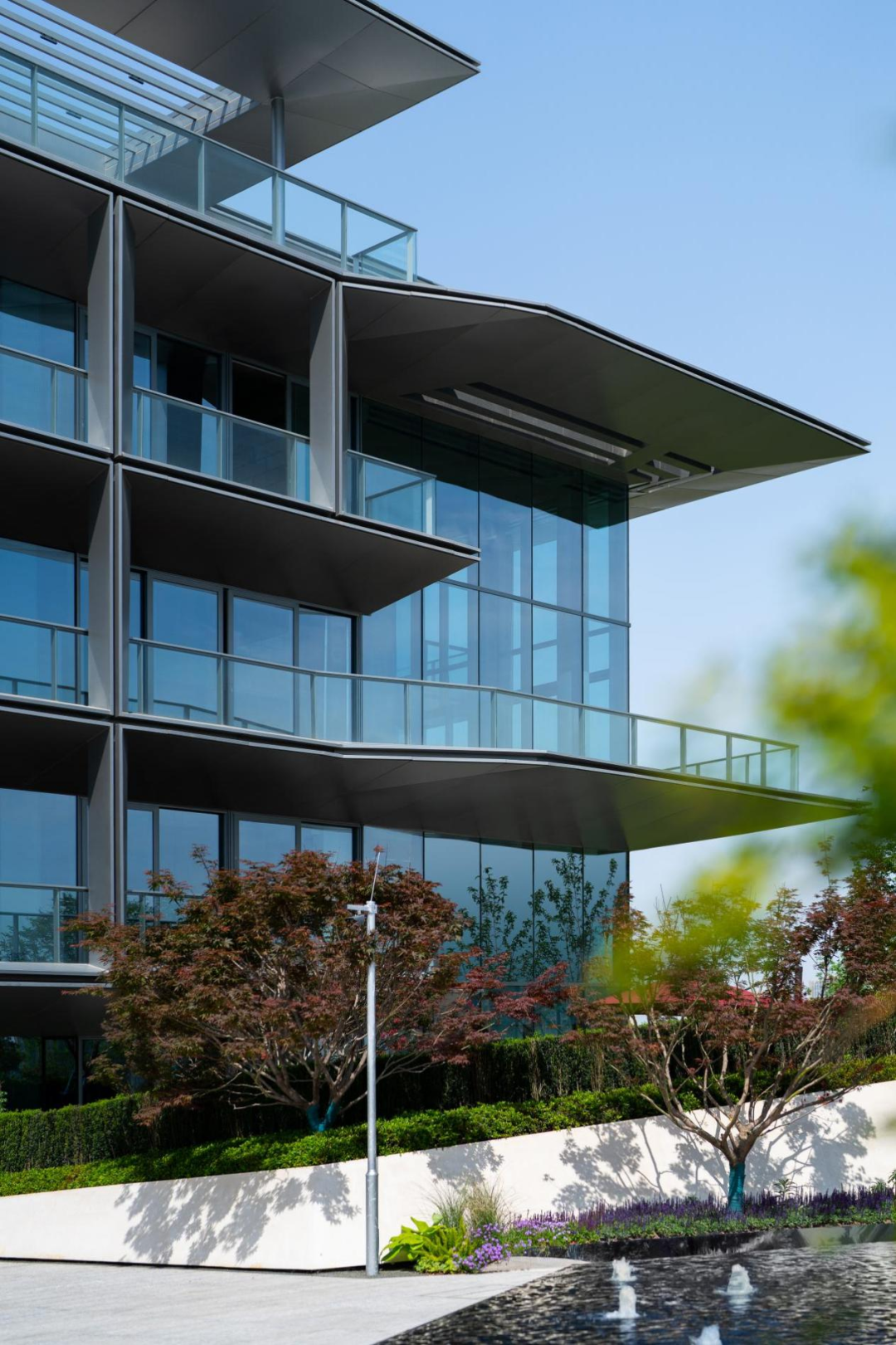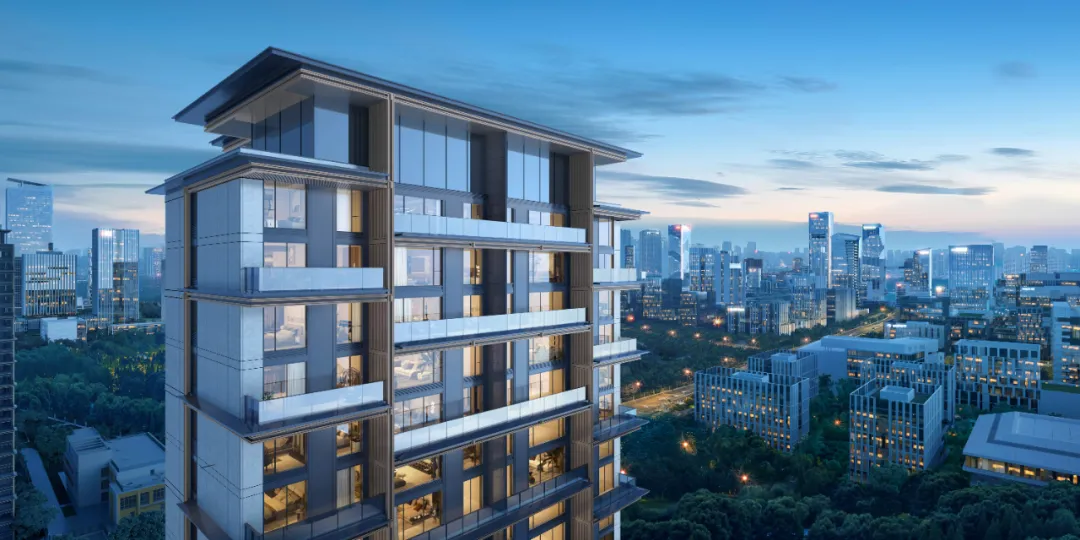 再比如,重檐耸翠也是整体建筑立面的创新点,从传统中式建筑中萃取“挑檐”元素,打造出别出心裁的“重檐”形态,高低错落,立面层次更加丰富,视觉更为轻盈飘逸。