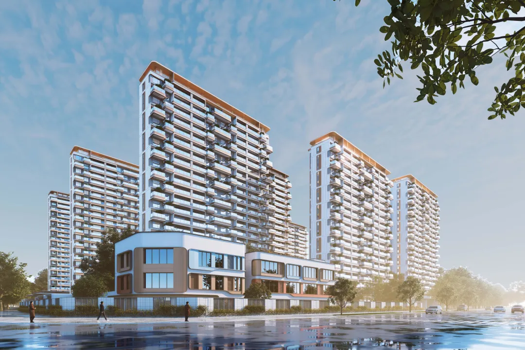 以项目高层产品为例,基唐文化为底蕴,将唐传统文化进行抽象、简化,在现代之妙笔下演绎出现代新唐风主义,整体立面风格横展宏伟,尽显唐建筑宏大气势,又不失国际感。