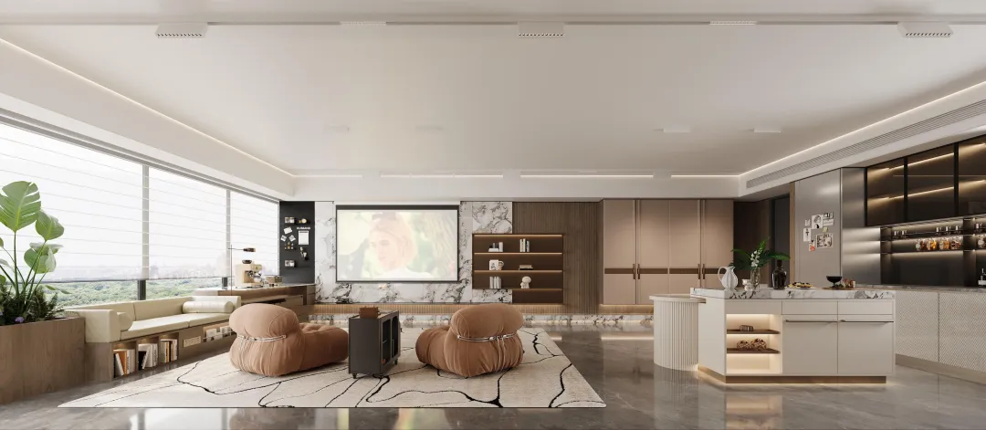 项目室内空间的设计从“体验”,“独特”,“社交”,“品质”四点出发,设计风格为现代简约,追求灵活多变的空间体验,在设计理念上想将曲江印打造成集社交、休闲娱乐、居家的城市级会客厅,营造丰富立体的空间感受。