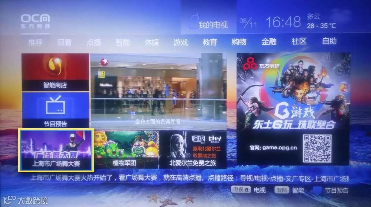 智能机顶盒观影路径:点播-文广专区-上海广场舞