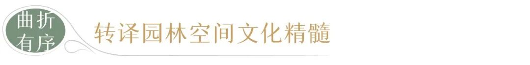 在设计师看来,游园规划与功能布局的落子成功,在于整个空间的起承转合或平实与重点的营造。设计研究建筑学家童寯在《江南园林志》的总论中提出的中国近代造园“三境界”,即疏密得宜、曲折尽致、眼前有景。无论是对称美学的运用、在地园林游园最佳体验手法的转译、空间序列对景的描摹,都蕴含设计对这片奢享土地的尊重。逐层递进的院子、亭子、水面空间和视觉焦点,共同建立自然的空间秩序引导。