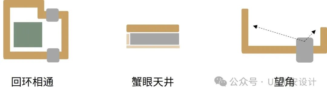 空间串联融合园林“蟹眼天井、望角”等要素,打造回环相通的风雨连廊系统,访客在曲折有序的行进中,感知空间步移景异的提示与转换。
