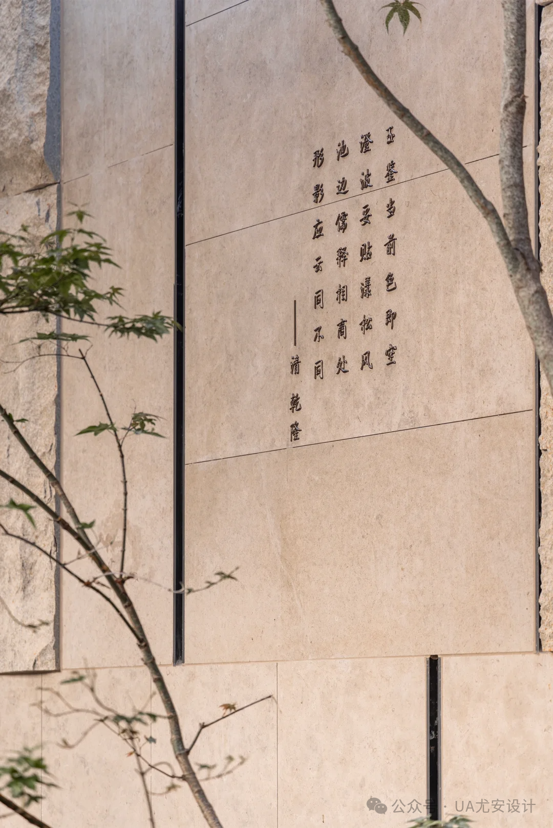 设计师探索的,是能够与狮山这片土地和谐共存的建筑美学。「兰」生活馆的建筑设计,既是对贝氏几何美学的致敬,也是对传统与现代精神的完美融合。因此,在重要礼序空间的品控与材质选样把控上,设计师借力材质美学的浓墨书写,为场所空间带来高价值,并通过重彩勾勒近人尺度精细度,极致控制建筑细部的呈现效果。
