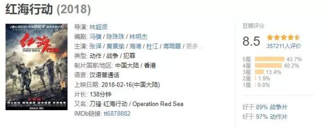 从这天算起的1053天之后,即2018年2月16日大年初一,以此次“也门撤侨”事件为背景的电影《红海行动》在全国公映。从该片上映首日票房成绩排名第四,凭借好口碑和高话题度一路逆袭,到大年初七已经坐稳单日冠军的宝座,截至3月3日,累计票房已经突破了28亿,同时豆瓣评分远超《战狼2》的7.2分,达到8.5分!