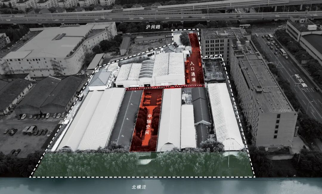 地块周边轨道及道路交通良好,可高效链接城市。西侧毗邻地铁5号线东川路站及在建的23号线规划站点。自然资源方面,西侧紧靠闵行绿道,东侧独占北横泾滨水资源,自然条件丰富。结合上位规划及周边现有资源,本案目标塑造以文化创意产业为主导、教育培训产业为特色、配套文化艺术空间及商业娱乐,集办公、培训、服务、体育于一体的文创产业社区。