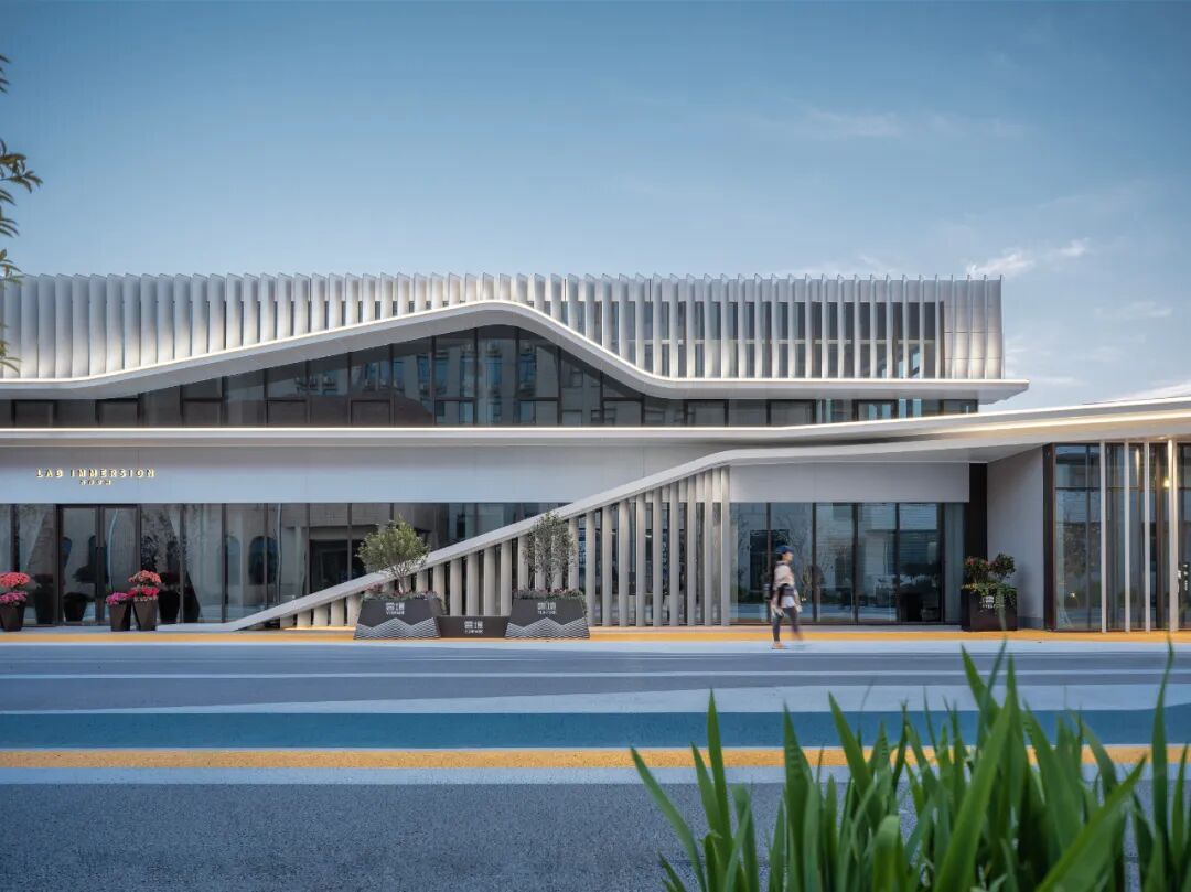 中轴空间明朗开阔,作为通往东侧滨水界面的重要路径,设计以左右相称的手法提升园区整体的气势及秩序感,进一步丰富空间感受。