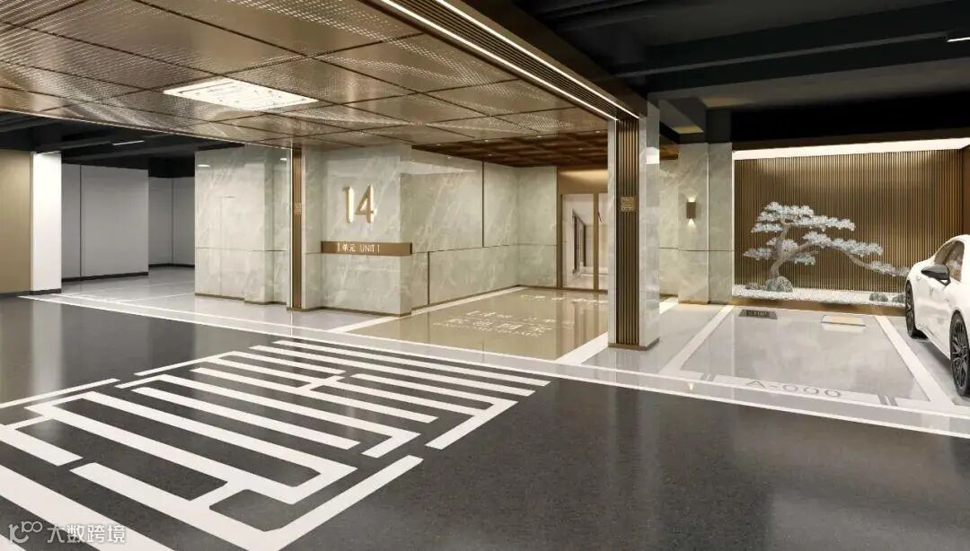 标识系统对于车库的导航和导向至关重要,它在车库设计中扮演着核心角色。在规划和设计车库时,我们致力于将标识系统与车库的精致装修无缝融合。例如,在设计电梯厅门厅入口的墙面时,我们会预先规划楼栋号码标识的安装点,并考虑其材料和工艺,以实现与墙面设计的和谐统一。