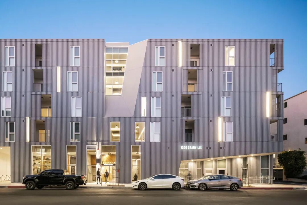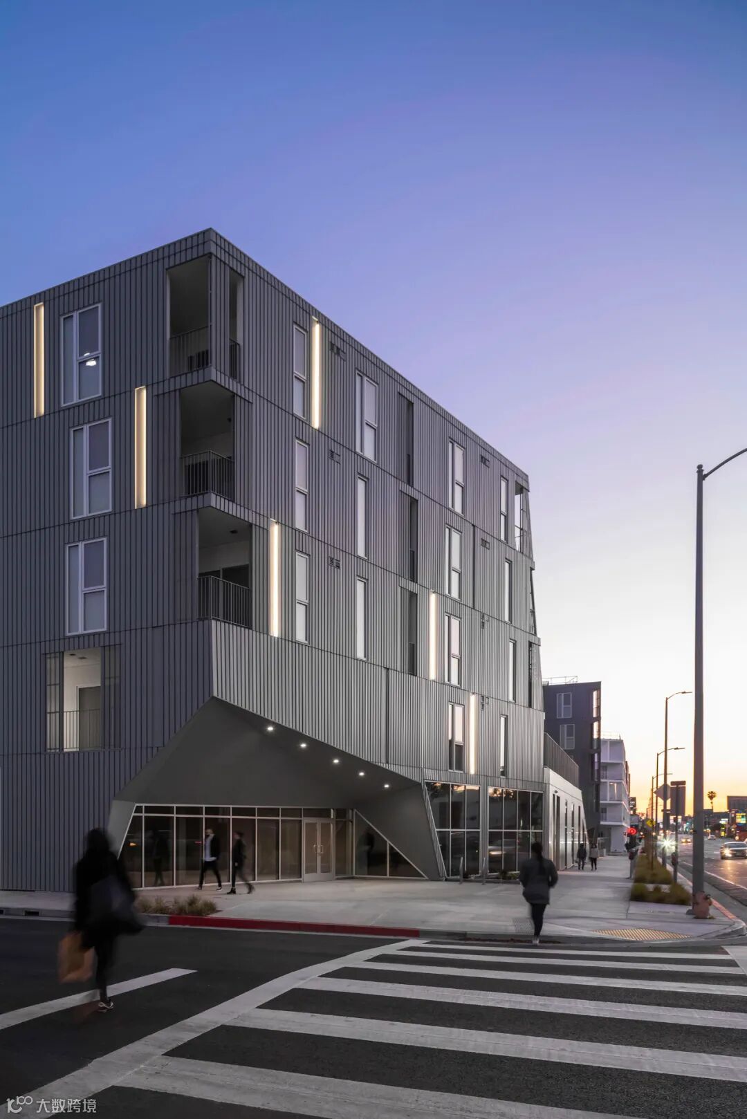 格兰维尔 1500 项目旨在强化城市体验,与 LOHA 早先在街对面建造的 Westgate 1515 项目遥相呼应。这个拥有 153 个单元、312,287 平方英尺建筑面积的新加州大学洛杉矶分校学生公寓项目加强了这个快节奏、新兴社区的地方感和到达感。该设计打破了大多数住宅项目的典型设计,在街道上展示了住宅和步行体验。这个街区长的地块曾经是一个汽车经销店,但现在已成为一个高密度多功能开发项目的典范,在这里,汽车和玻璃幕墙建筑让位于出来散步的居民,或者在一个具有更大社会目的的友好广场上流连忘返。