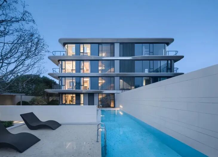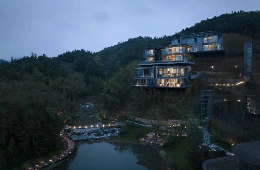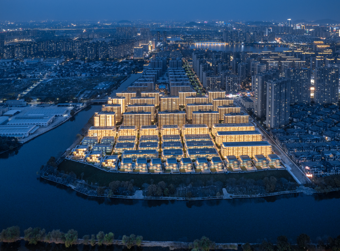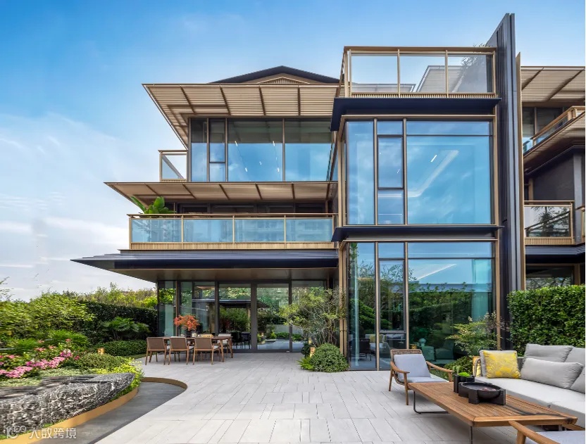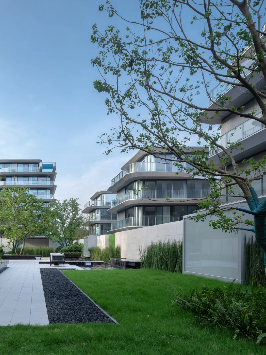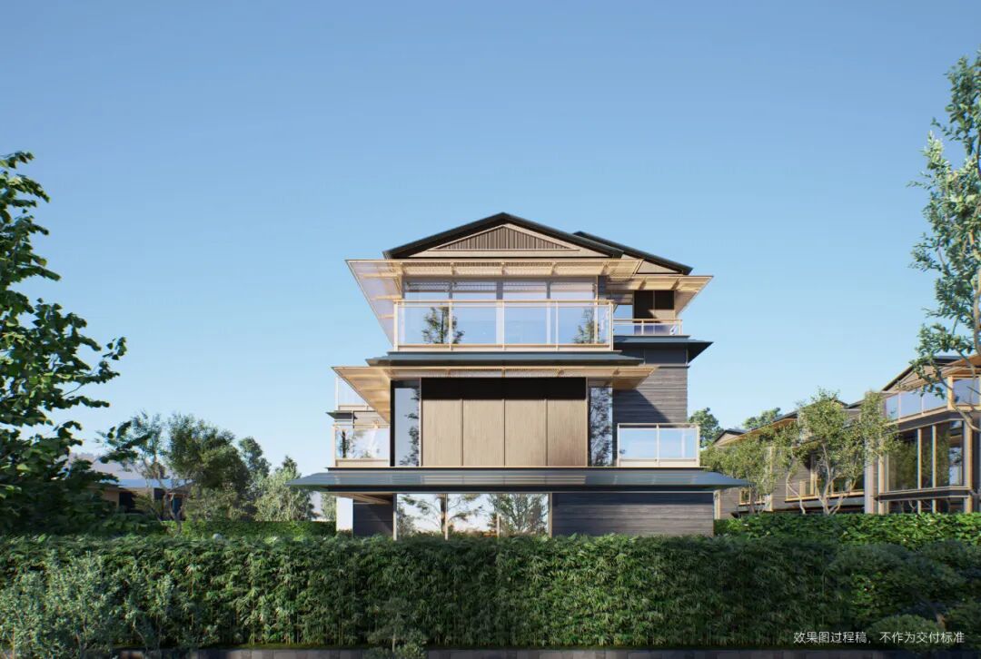 建筑涵盖类独栋、双拼、三联排等型制,汲取东方风骨,以玻璃为主材,让建筑消隐于自然,获得沉浸式体验。