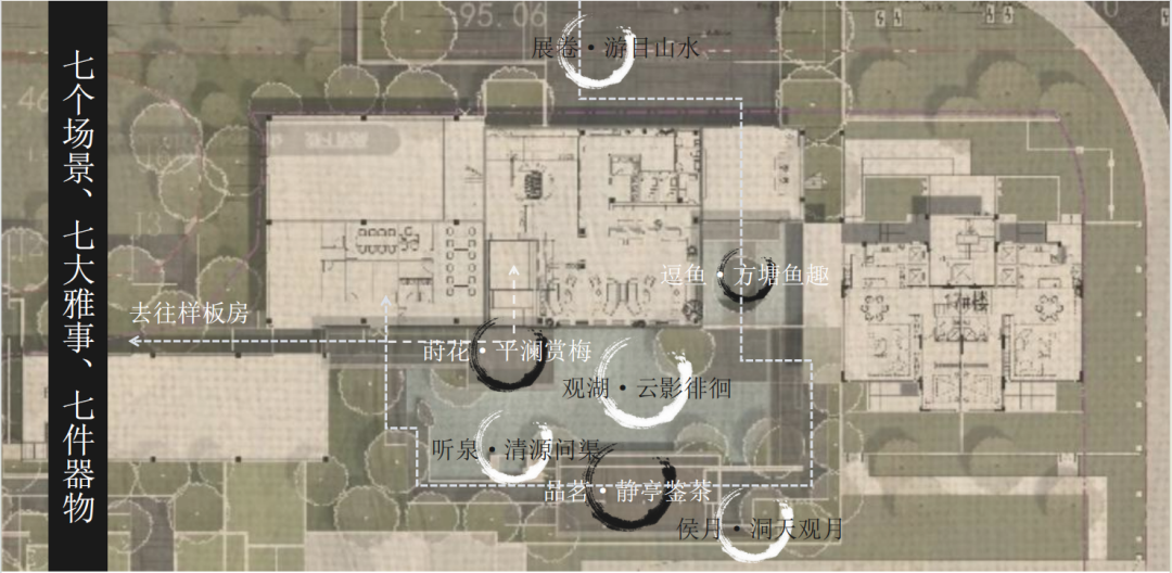 示范区将“宋韵”作为主题造园,把宋朝的点茶、焚香、插花、挂画四件雅事融入景观中,把湘湖的底蕴融入到业主的人文雅士般的日常,既有品位,又有内涵。