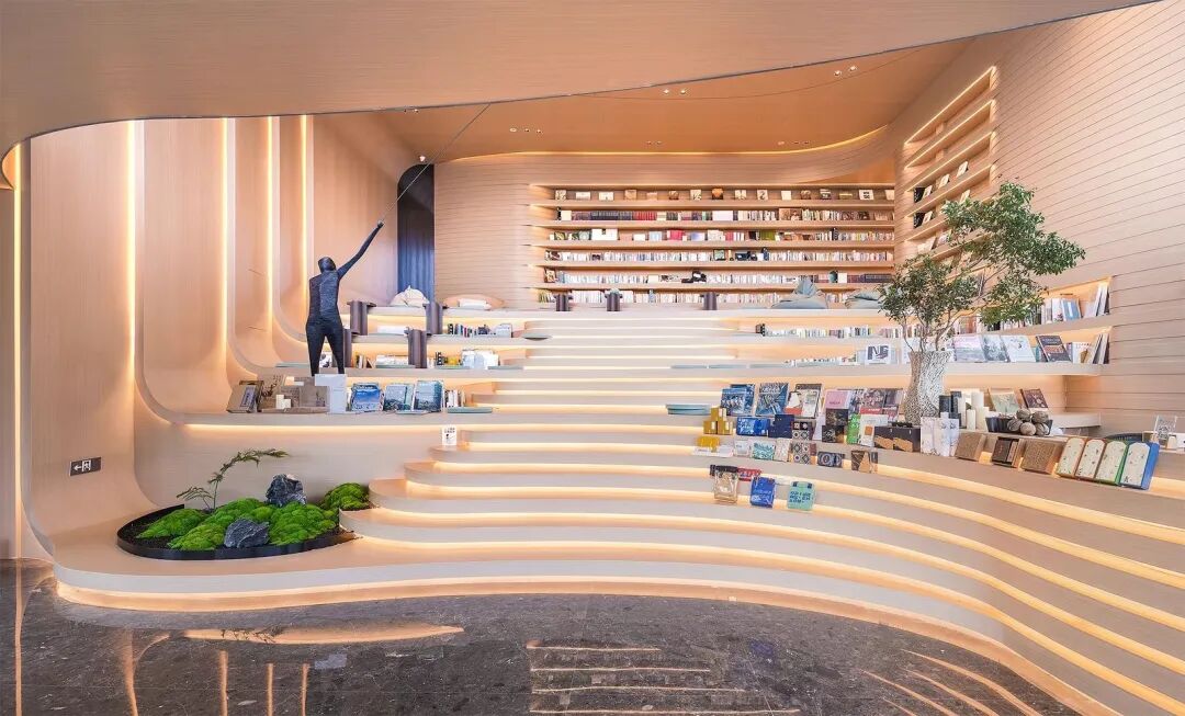 浮光图书馆静谧湖畔,数千册图书荟萃,还配置有咖啡吧、阶梯教室等空间。