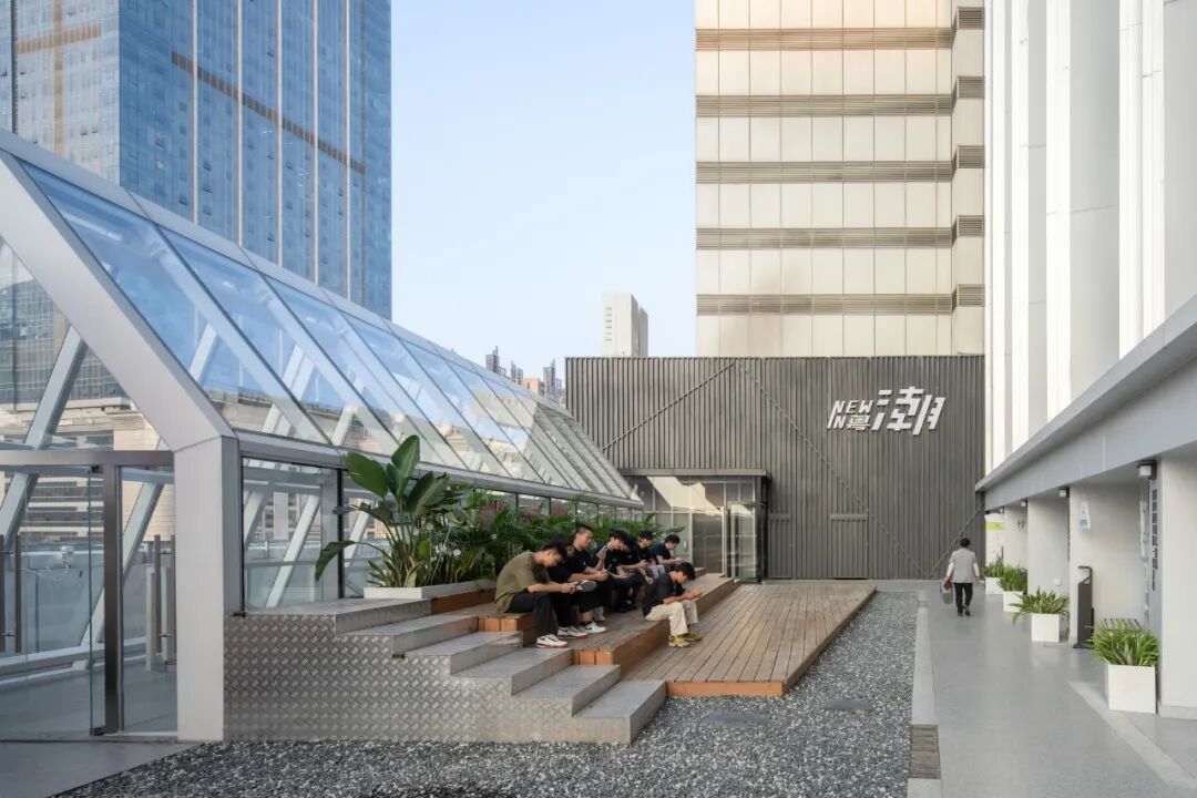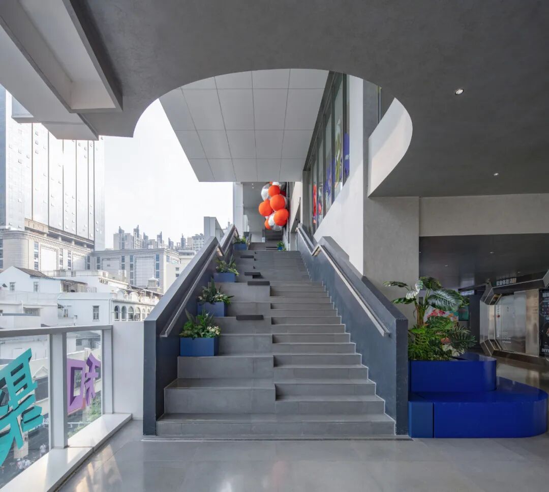 The façade's arcade stairs brought the spread-out arcade culture and Lingnan charm of Beijing Road into a vertical and multi-level commercial space, resulting in a distinctive visual design. Due to the building’s address being No. 182, the "182 Arcade Stairway" was born. This arcade stairway can be converted to suit different activity themes, transforming into a stairway art gallery, a stairway living room, or a stairway garden as needed.