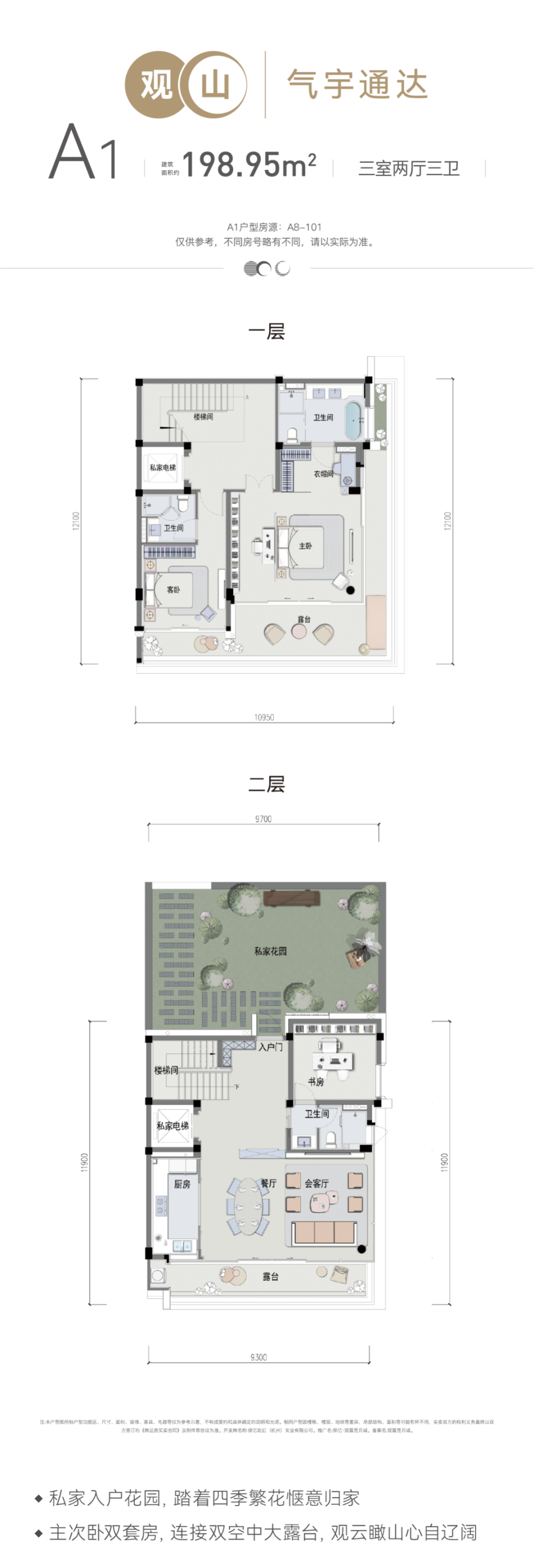 每一户均有独立户门+一户一梯的独立入户动线,不用担心和邻居共用一部电梯的尴尬,自下而上,私密无干扰,哪怕是中叠都是有天有地的“独栋级”居住体验。