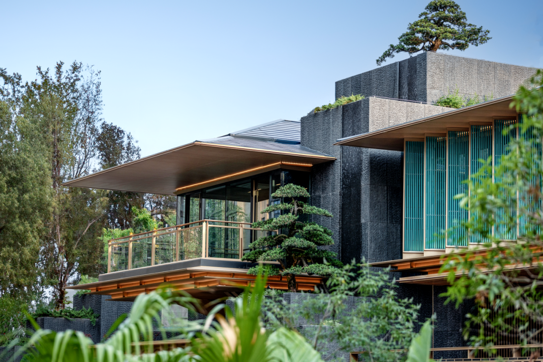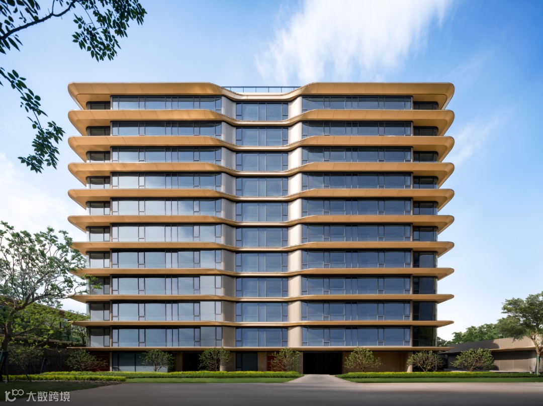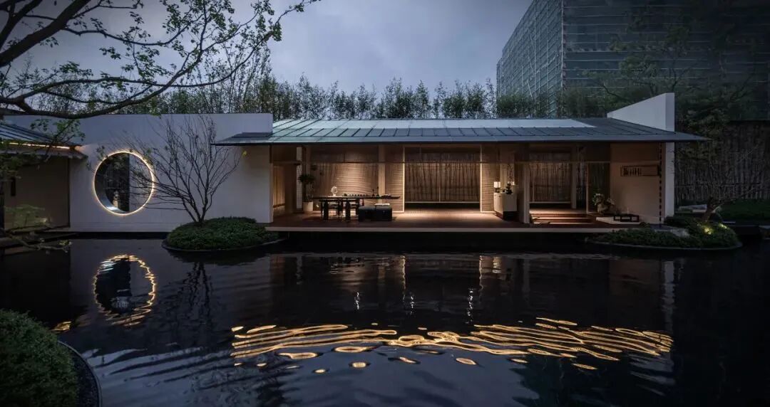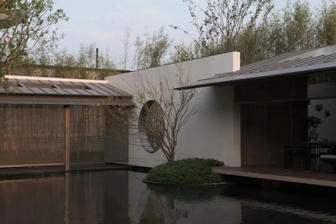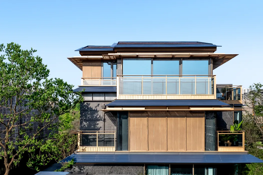 设计团队从宋代建筑中提取歇山顶样式,转译形成深远的挑檐,在视觉效果上给人以棱角分明、结构清晰之感,整体呈现一种清雅内敛的当代气质。