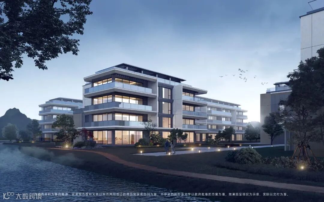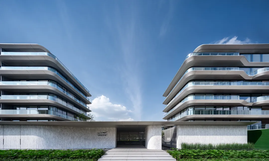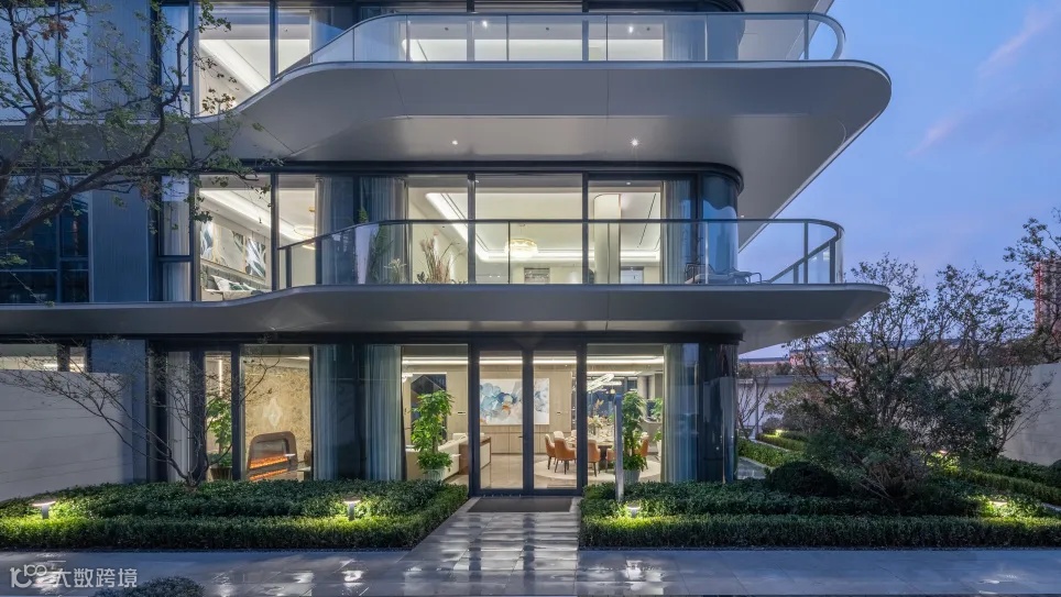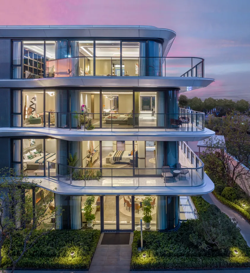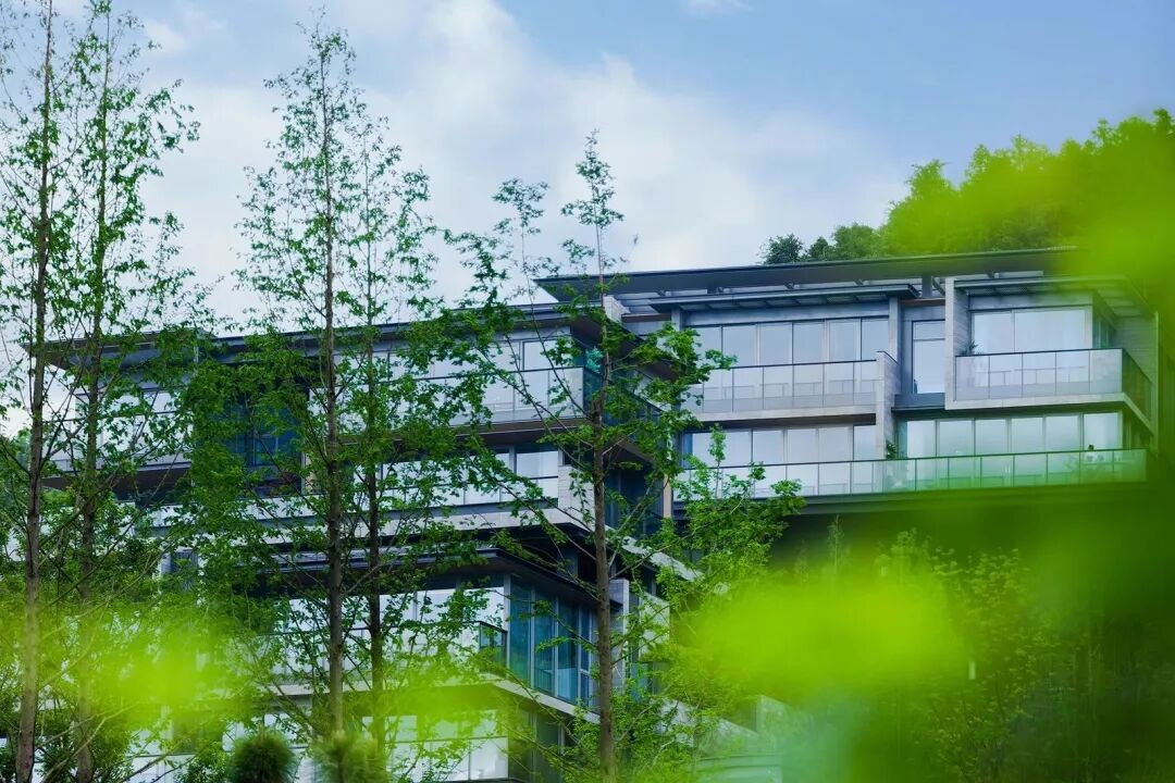 建筑涵盖类独栋、双拼、三联排等型制,汲取东方风骨,以玻璃为主材,让建筑消隐于自然,获得沉浸式体验。