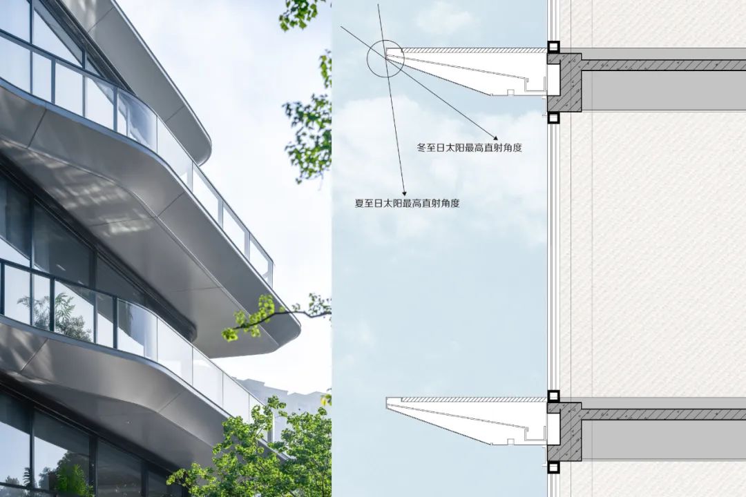 挑檐弧度经过设计团队的打磨锤炼,形成流畅而极具张力的曲线序列。它不仅仅满足人们对于住宅建筑与日俱增的审美需求,同时在功能上达到控制日光对于室内产生的影响,具备冬暖夏凉的实用性,提升居住体验。