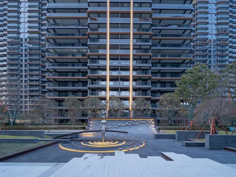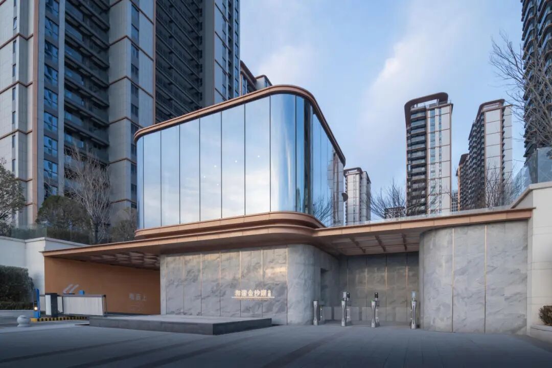 建筑立面的设计灵感来源于蜿蜒前行,滔滔不绝的江水。通过局部的曲线应用,赋予建筑柔美的姿态,在鳞次栉比的高楼大厦中,凸显出独特的身形。