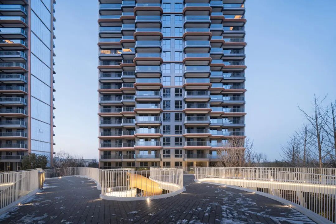 建筑弧形造型通过阳台、空调百叶进行弧形倒角,转角曲线设计彰显力与美的时尚变化。曲面转角阳台打破了高层建筑边缘锐利的传统,赋予建筑更多浪漫的同时,也使住户能够看到更加宽阔的景观视野,营造温馨的居住氛围,实现人、自然、建筑融为一体,打造高端公园社区。