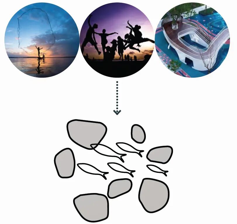 向晚,渔船满载而归,泊在岸边。散学的孩子们,忙忙奔来,早早候着...见渔船驶来,栈桥和着渔歌沸腾了。伴着孩子们的喧闹,是最好的渔隐之处,在小筑里看看花、听听风、聊聊天...
