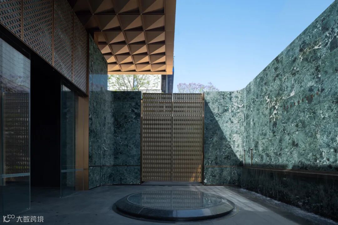 从场地看,主入口进深小而横向延展面大,内外约有5米高差。设计师因地制宜,提取成都独特的市井街巷肌理,摒弃传统中入直进的流线,将曲折的流线融入其中,巧妙地将单一的中心庭院空间赋予丰富的层次,利用高差设计出曲折婉转、层次丰富的展示动线。