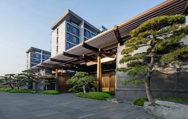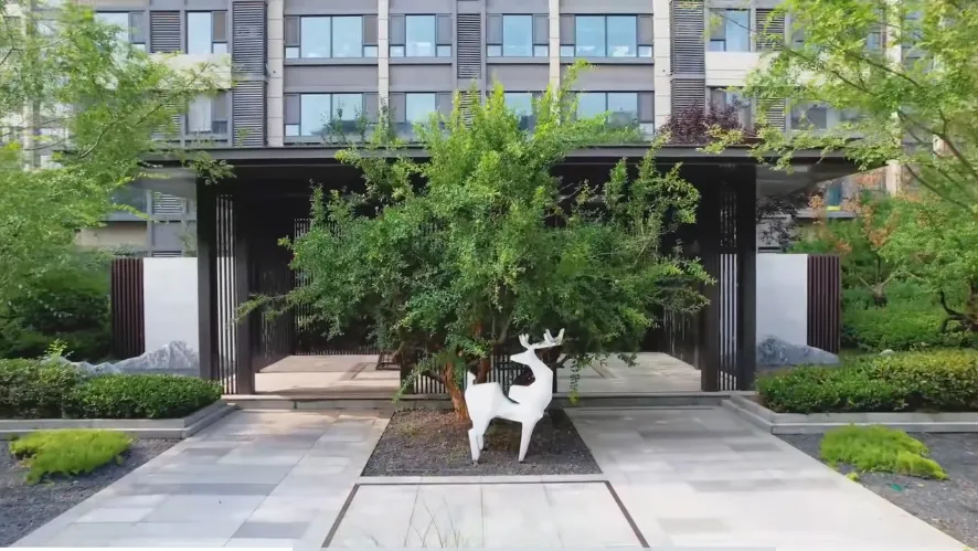 设计当中,运用森林元素和园林小品,将森林和城市之间结合起来,通过在院落之间,植物和景墙形成空间的转换和半围合的空间,步移景异,形成人视角最大化的景观视线。