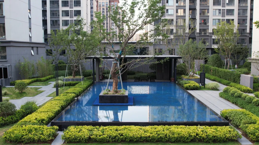 这是一场从美好生活提案到美好生活实现的社区营造,也是一次人间烟火气与美学生活方式的共融产物。以长期主义为的,从人文关怀和生活场景出发,用空间规划促成了商业、体验、文化型活动的聚合,给予当地居民一个对美好生活的体验。屏蔽周围嘈杂环境,通过高低错落的围墙、高景观池和水池,把项目做成一个围合的庭院,让进入项目的客户能体验完全区别与外部的静谧。