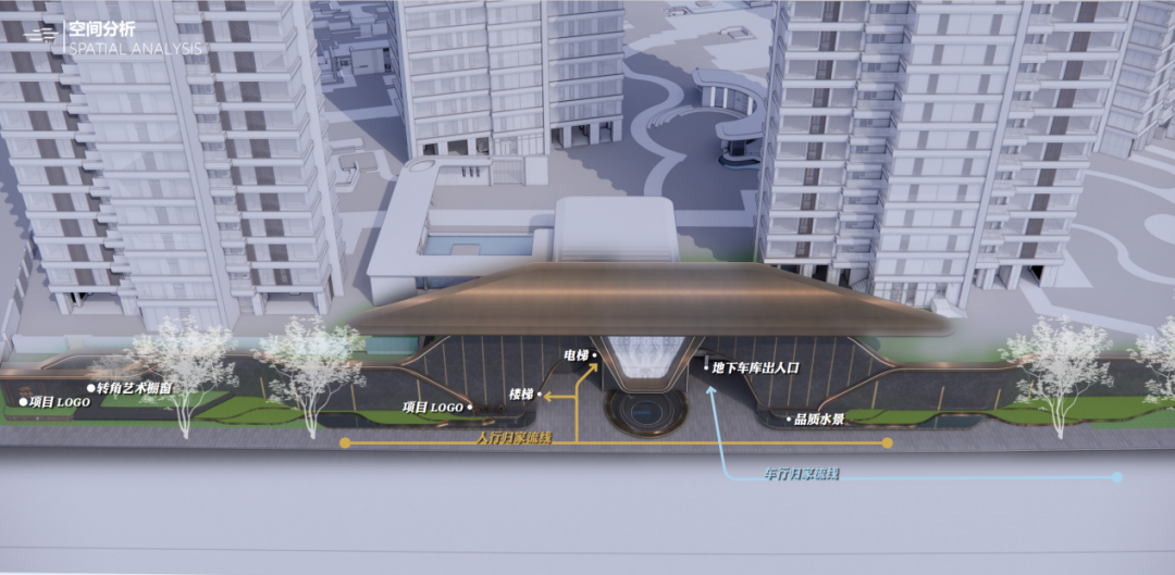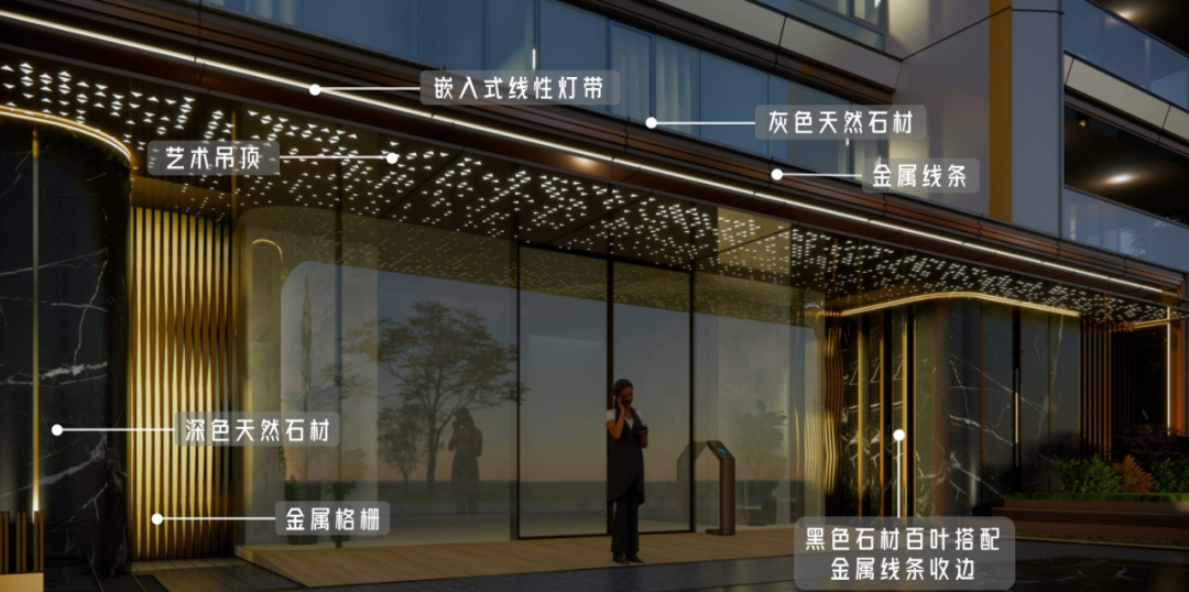 在这个致敬审美的时代,以艺术手法勾勒,实现近人尺度精心刻画,酒店式单元入口恢宏大气又精巧艺术,犹如一幅流动的艺术画卷,为建筑增添了独特的气质与魅力。