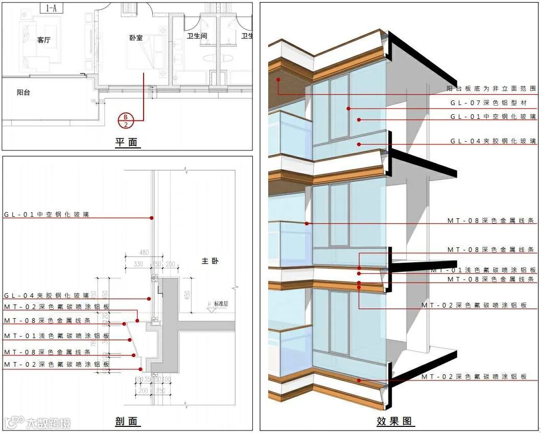 整体铝板与玻璃幕墙形成虚实对比,增强了视觉冲击力和艺术表现力。