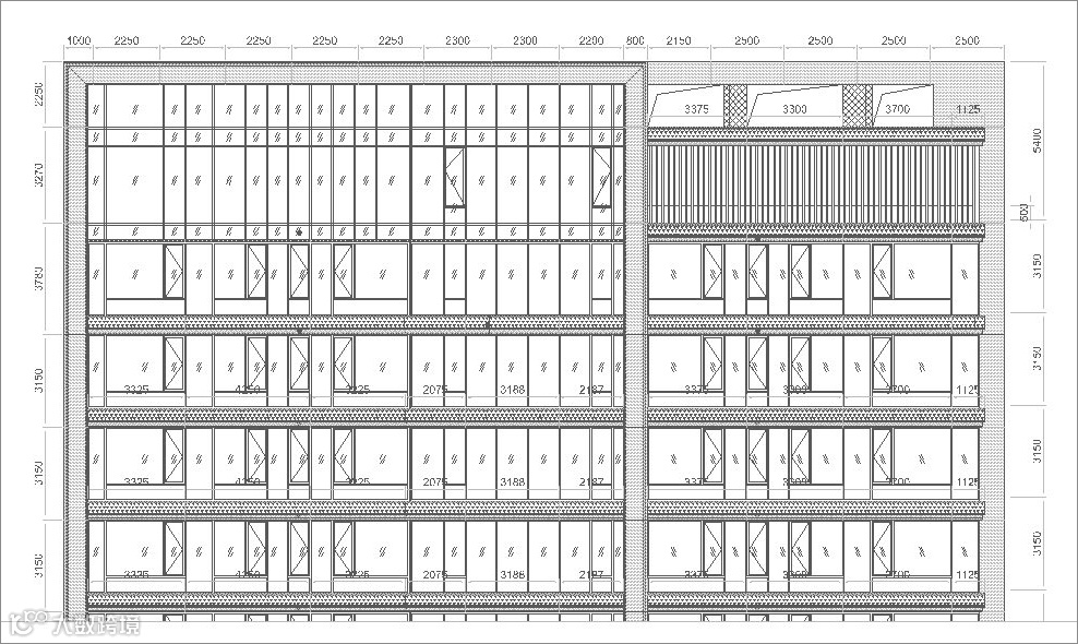 山墙面的设备平台同样做了格栅隐藏美化处理。