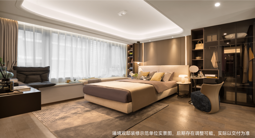 在建筑立面上,项目应用温润轻盈的国际化建筑语境,以高级定制铝板与通透大玻面,极富东方美感的披檐,为城市天际勾勒一道历久弥新的艺术线条,呈现藏品级的封面立意。