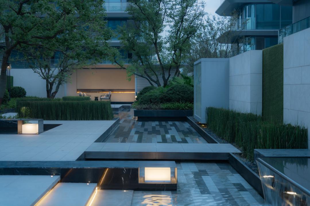 当世人执念于传统墅居归家没有隐私感时,【东润府】特别打造了独门独院的入户动线:下叠设置有下沉式独立归家庭院;所有户型皆以专属电梯直达,形成互不干扰的归家情境,优雅从容的生活日常大大提升了墅居仪式感。
