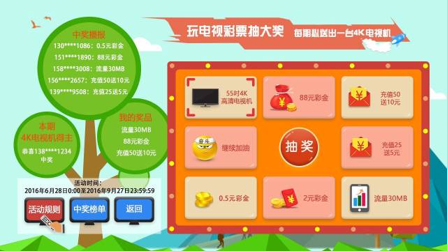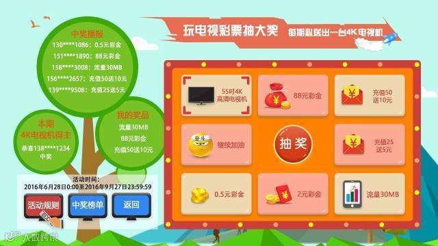 1) 55吋4K高清电视机:中奖者请联系活动客服电话确认领奖事宜;