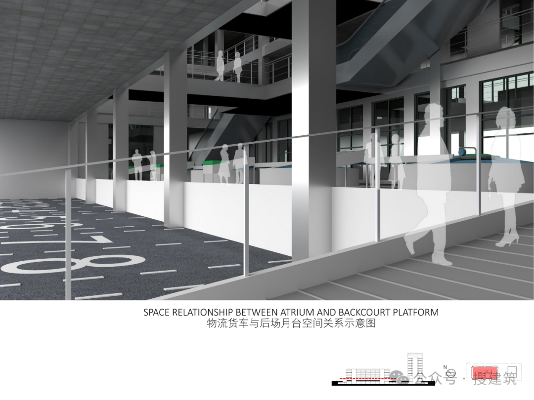 环境设计方案:采用多种绿色科技结合可以削减每年的运营成本,实现合理的投资回报。采用设计建筑中庭,引入自然采光与通风的方式,解决农产品批发市场常见的重气味的难点;如后置货车卸货场地,解决机动车流线与行人流线混合所带来的风险,增加临街铺面面积从而增加收益等。