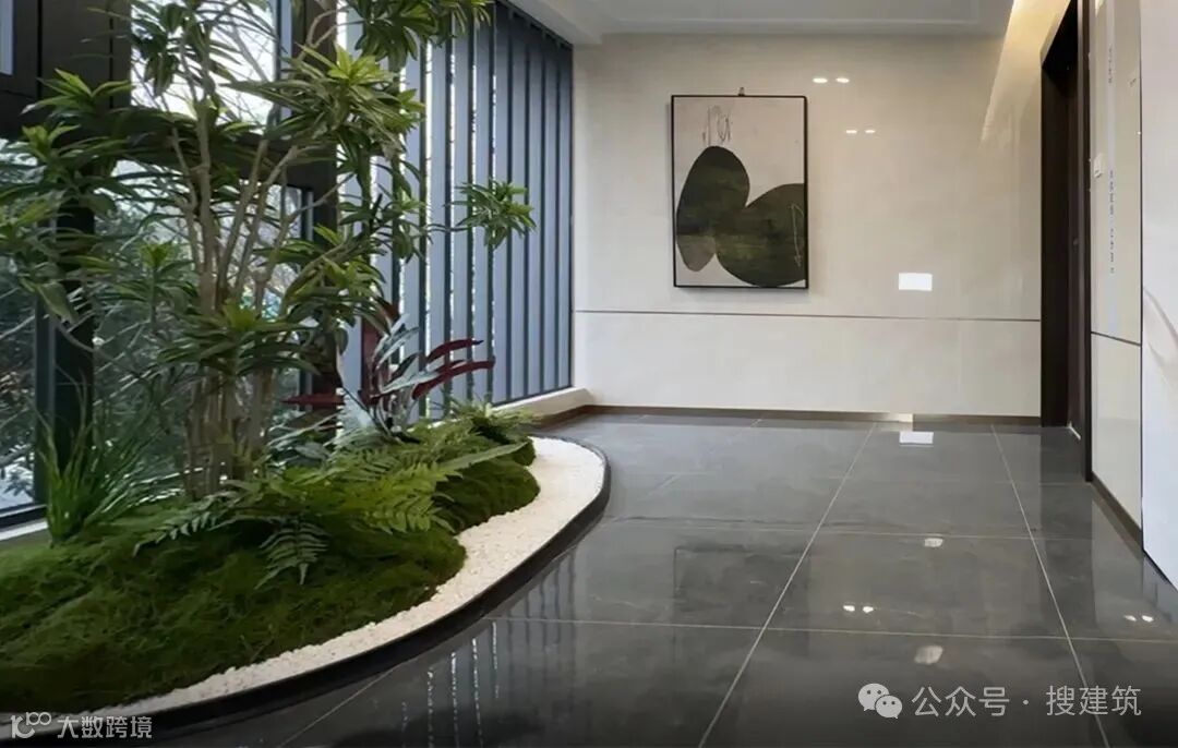 5、场景感更多,更强,全电梯明厅作为一个充满情景化的空间,恰好能够成为一个极具仪式感的入户花园,近乎满足大平层对于“空中花园”的需求