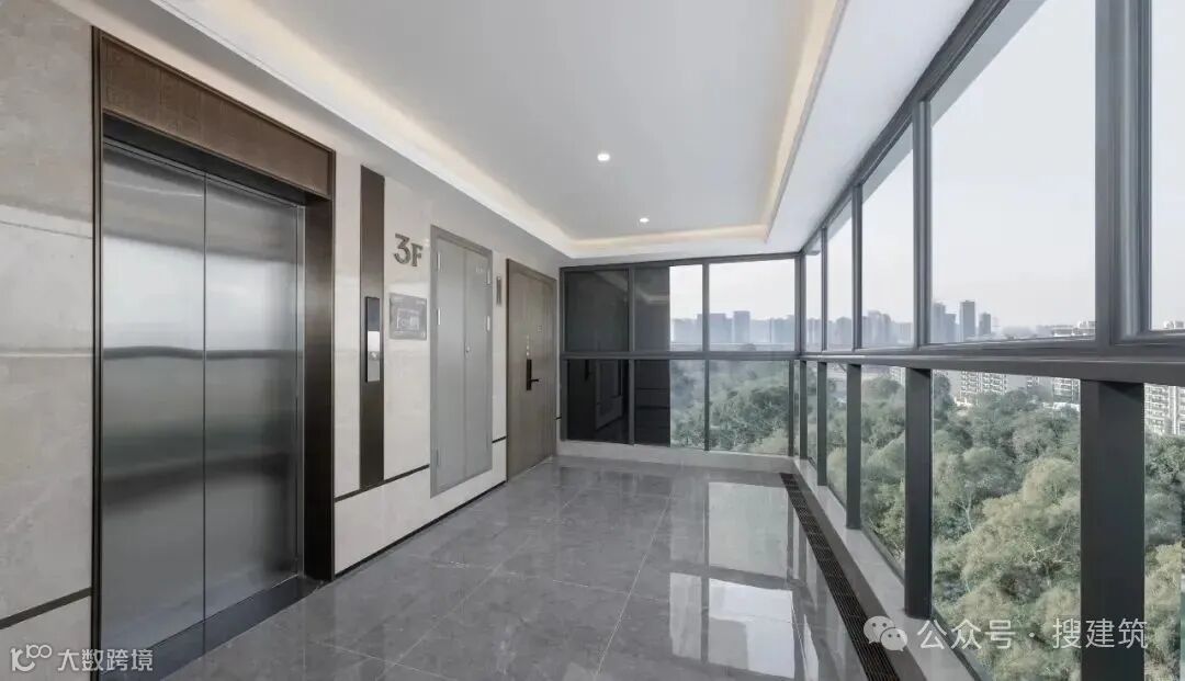 作为一个与自然充分融合的入户过渡空间,全明采光电梯厅是能够优化居住体验与舒适度的重要元素,设计也对电梯厅的设计越来越重视,完成了「电梯厅」的升级进化。