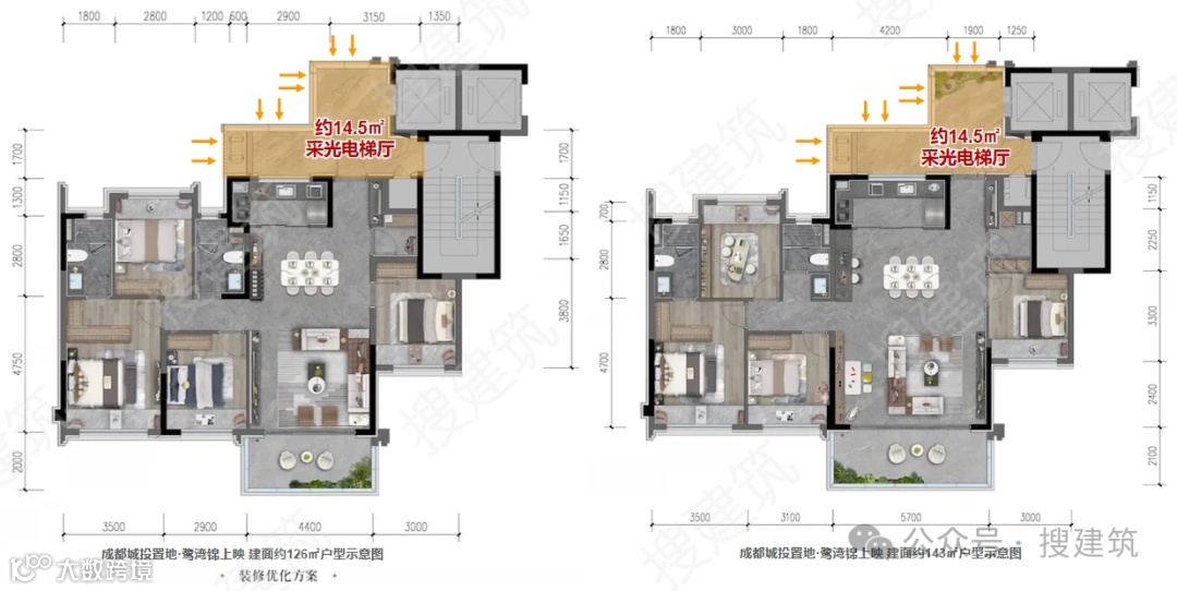 搜建筑发现市场一直在不断地对户型迭代升级,其中,花园式全明电梯厅(入户光厅)已成为“卷王”户型必备。