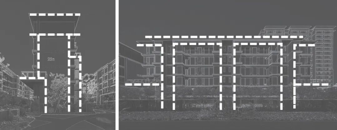 项目紧邻沈海高速,沿线小区多为山墙面正对高速,规划设计时我们要思考在如何顺应城市肌理的同时又能创造丰富的天际线及城市界面。