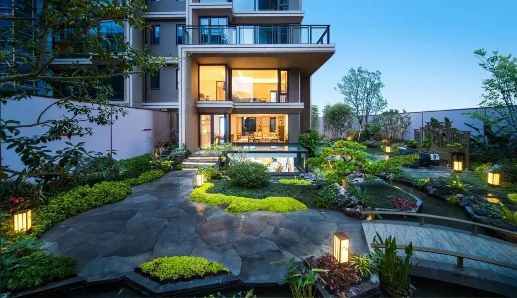 高楼与叠墅相辅相成,为居民提供了丰富多样的空间体验,从城市繁华到园林幽静,打造了多元互动的生活场景。