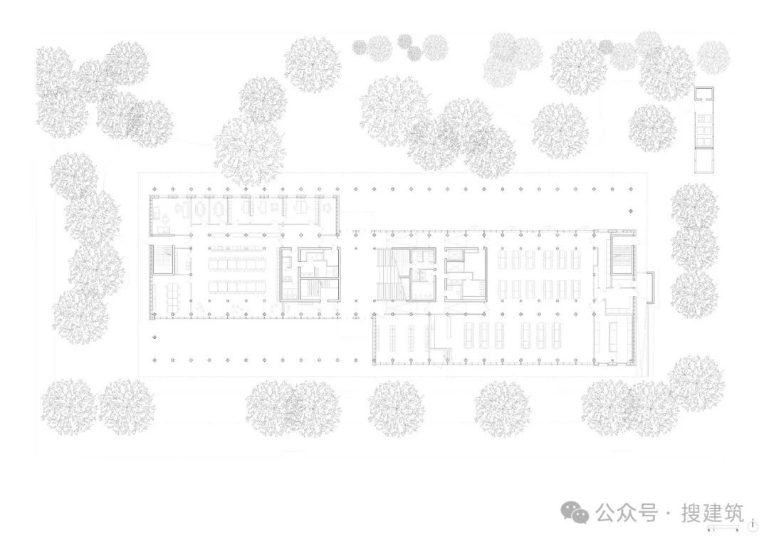 在路德维希堡西部,新的 5.5 车道小学教学楼沿着富希霍夫大街新开发区向北延伸。根据操场上装满书的书架这一设计形象,将知识传授和社会交往之间的学校学习理想转化为一栋木质混合建筑。三块天花板像书架一样向外悬挑,在流动的室外场地中央为学校社区提供了占用和个人填充的空间。一楼的建筑立方体中开辟了一个有顶棚的区域,迎接孩子们的到来,该区域与行政区域平行,旁边是学校教职员工的房间,从而促进了师生之间的联系。进入教学楼后,你会发现自己来到了教学楼的核心区域--大楼梯大厅。