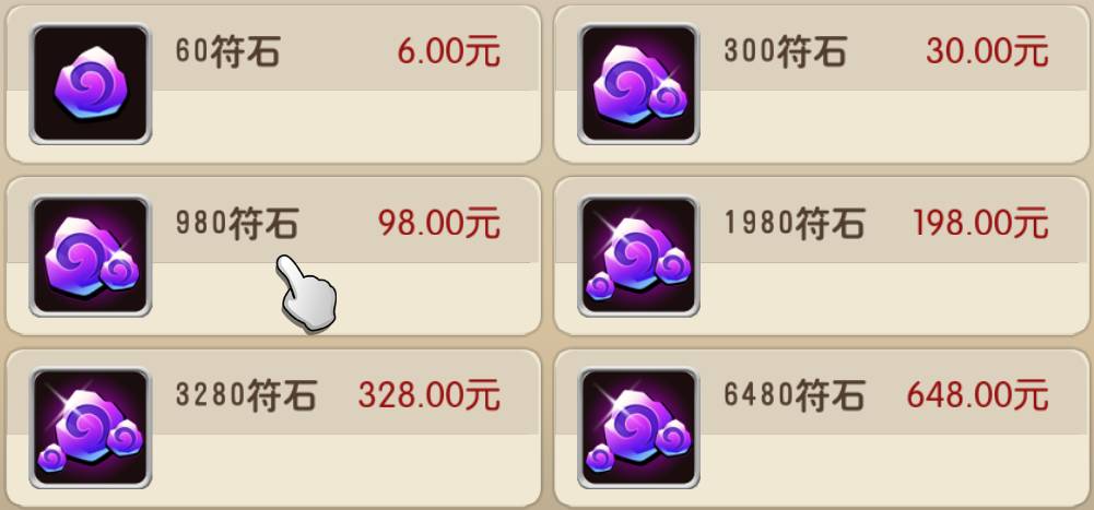 A:大部分玩家,符石通常都是用来买体力的。还有摇钱树,相当于用符石换金币。还有买各种礼包;在奸商和黑店里消费够;购买副本次数,竞技场次数等等。