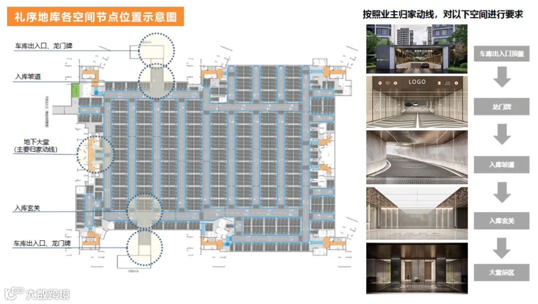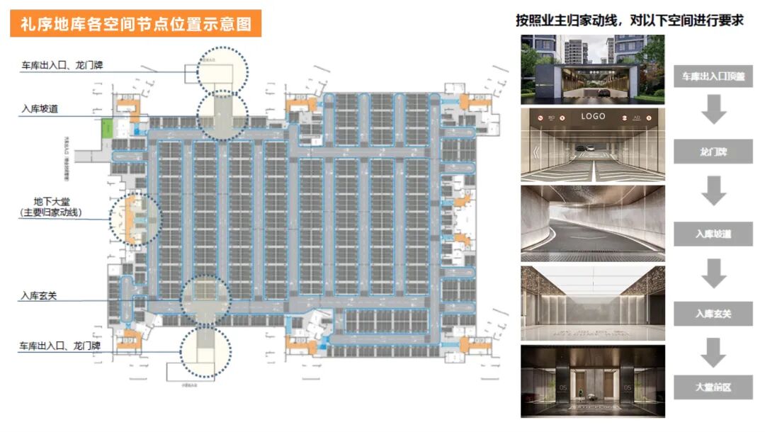 地下归家体验凸显礼序感,展示产品用心用情打磨细节品质,彰显质感。