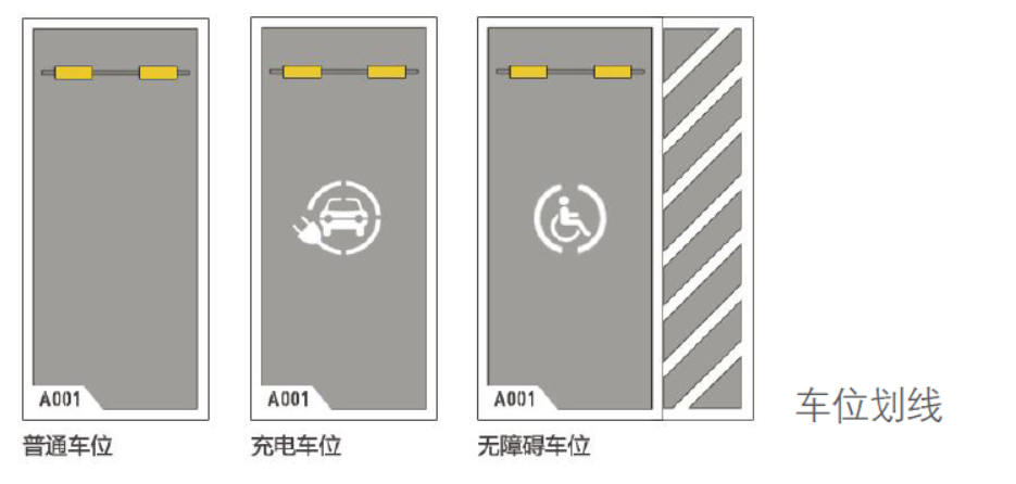 方案二:车位涂装(热熔划线)适合直线画线,不适用图案类涂装弧线,耐久度为5~7年,但不耐脏污,维护成本高。