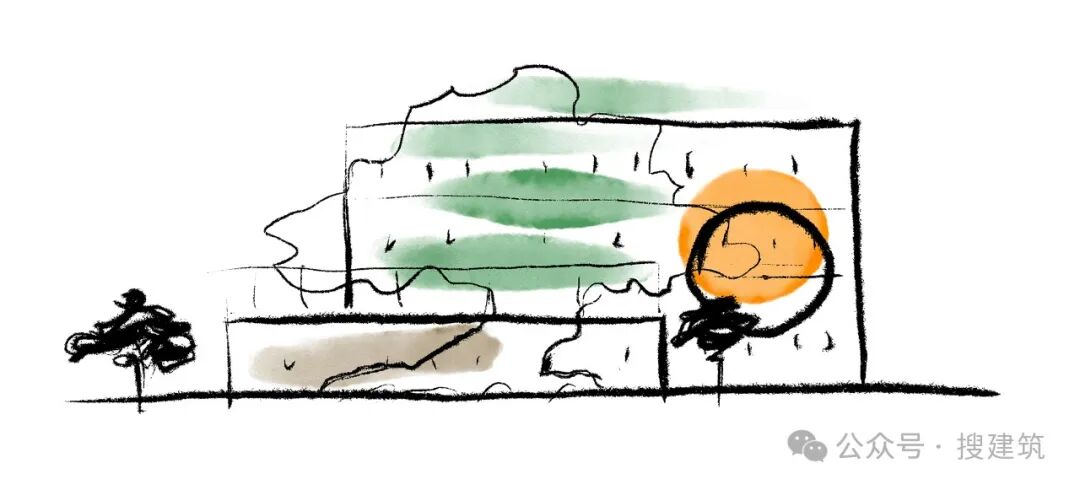 在紧张的设计周期压力下,我们力求避免对这些需求进行“头痛医头”式地逐一回应。由于待改造的室内空间都直接与外立面相接,我们决定以外立面改造的设计概念为叙事线索,来统合完成各处局部空间的设计。这样的设计策略大幅降低了前期沟通成本,让园方得以从宏观视角理解建筑师的设计意图,从而快速推进方案。