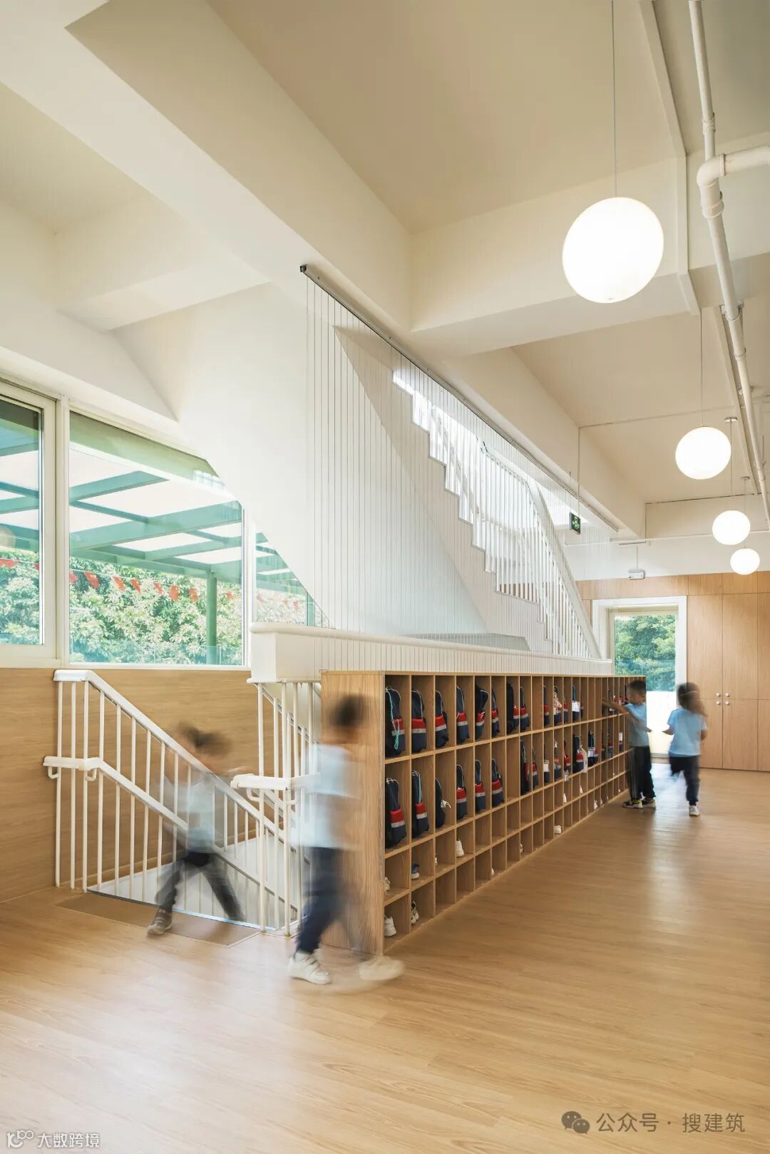 经历了为期一个多月改造后的碧榕湾幼儿园旧貌换新颜,不仅得到了众多小朋友们的喜爱,也获得了家长、园方以及社会的一致认可。作为建筑师,我们认为物理环境也是儿童学习成长的重要参与者,良好的教育空间对儿童的性格养成和心智开发都会产生积极影响,希望未来会有更多校园从规训化的空间范式回归到呵护、启迪的教育本源,给孩子们的校园时光增添温暖明亮的色彩。