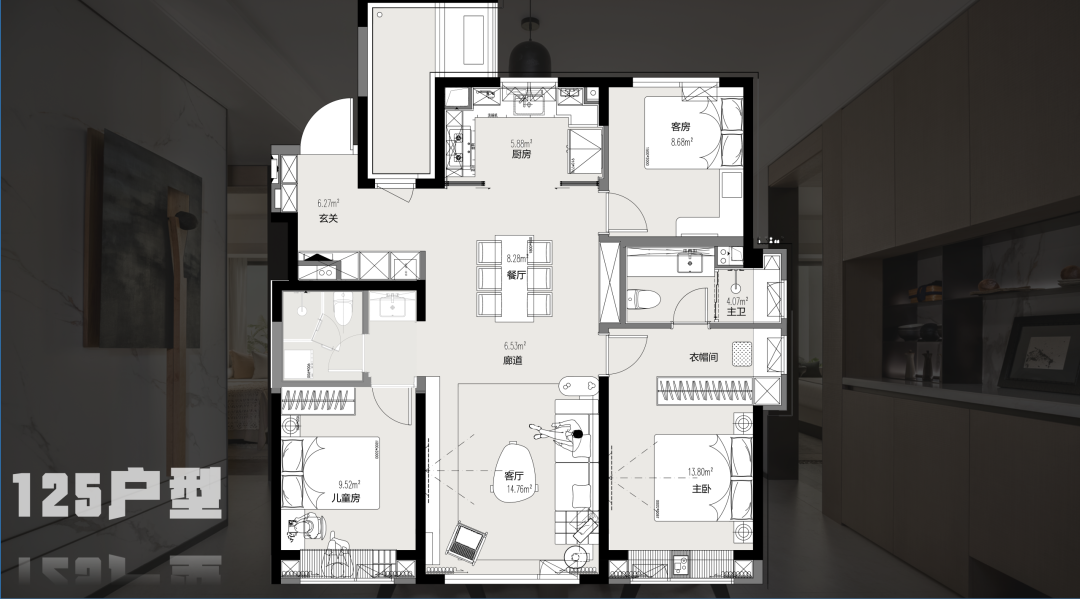 餐厨空间及厨房多功能室集合一体,视觉上空间更为开阔,使用上功能更为融合。