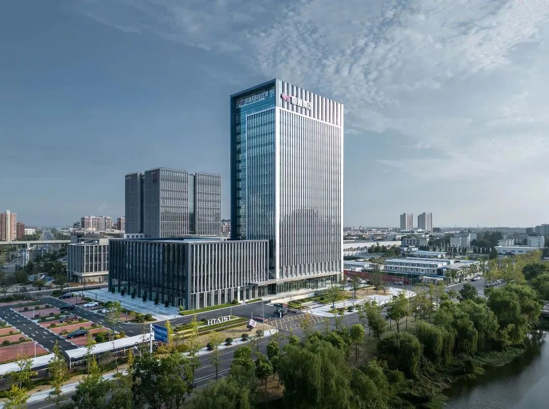 台州Z中心主楼采用鲜明的体块咬接关系,同时采用色系相近的玻璃、穿孔铝板等材质,保持了整体造型语言的轻巧统一。
