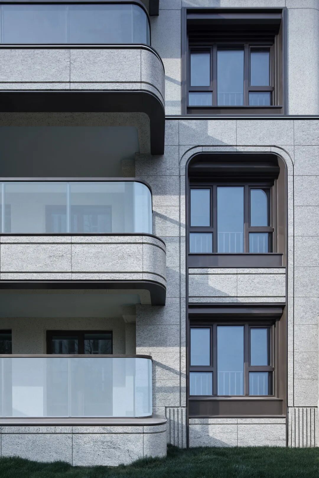 △ 浅色石材配搭深色金属铝板,呈现沉稳、大气的格调