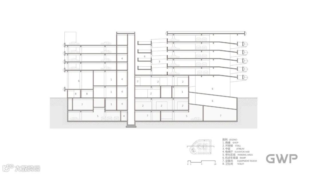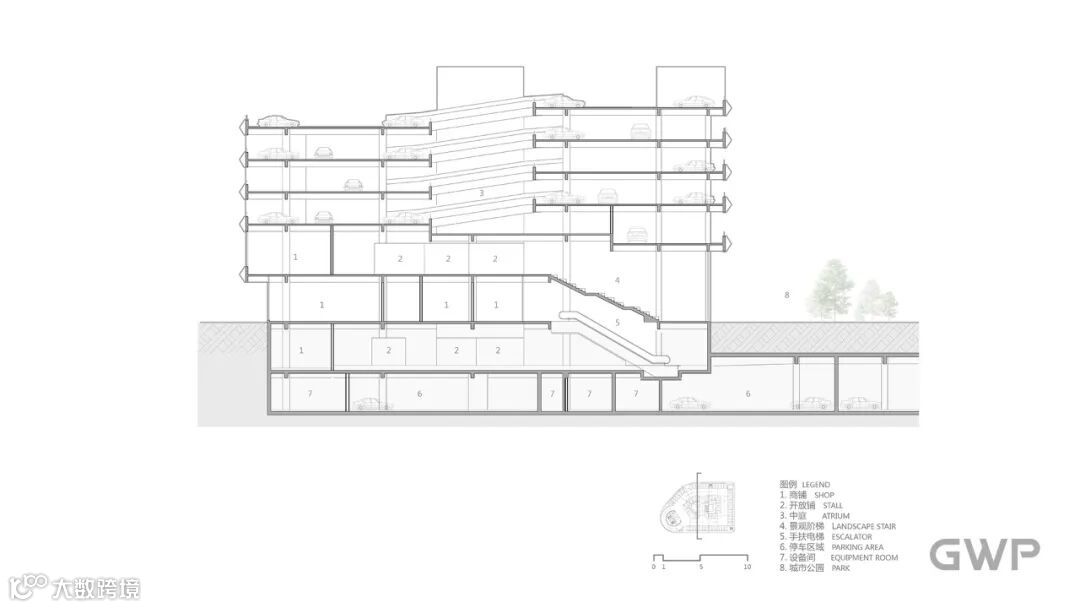 △东莞CBD示范性停车楼剖面 © GWP Architects