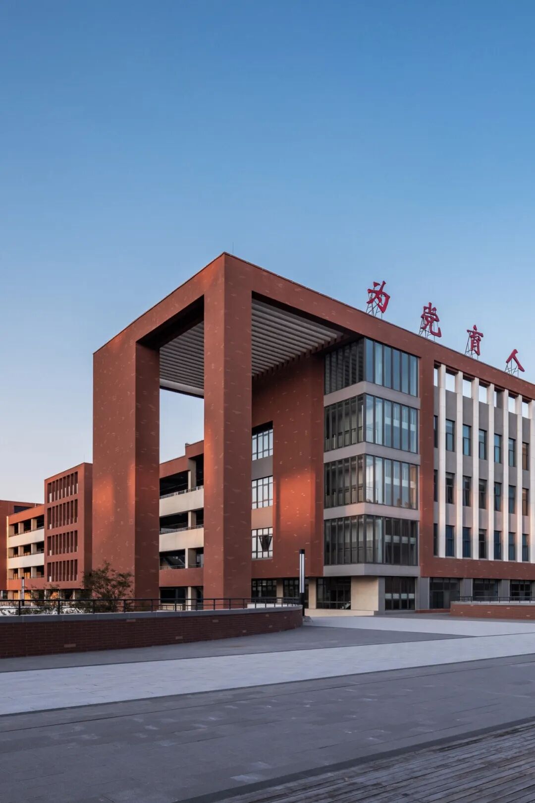 为了能够匹配学校所传承的历史底蕴与办学愿景,通过红砖这一材料让建筑最大化体现校园的人文历史与经典传承。