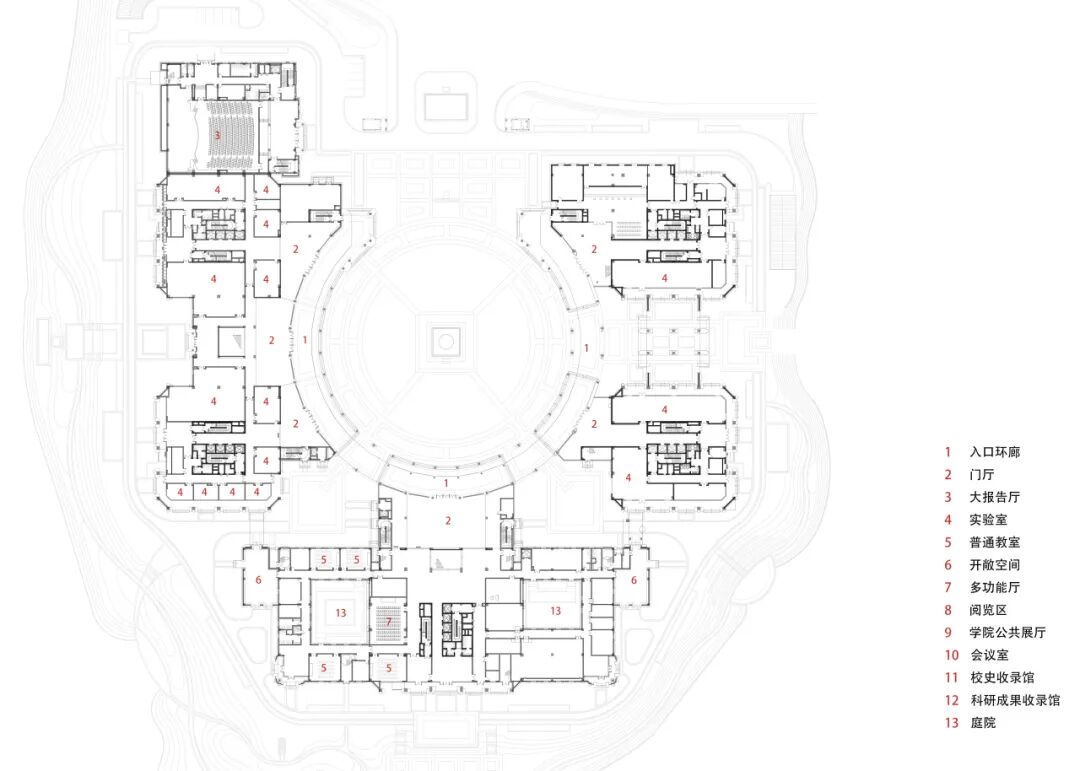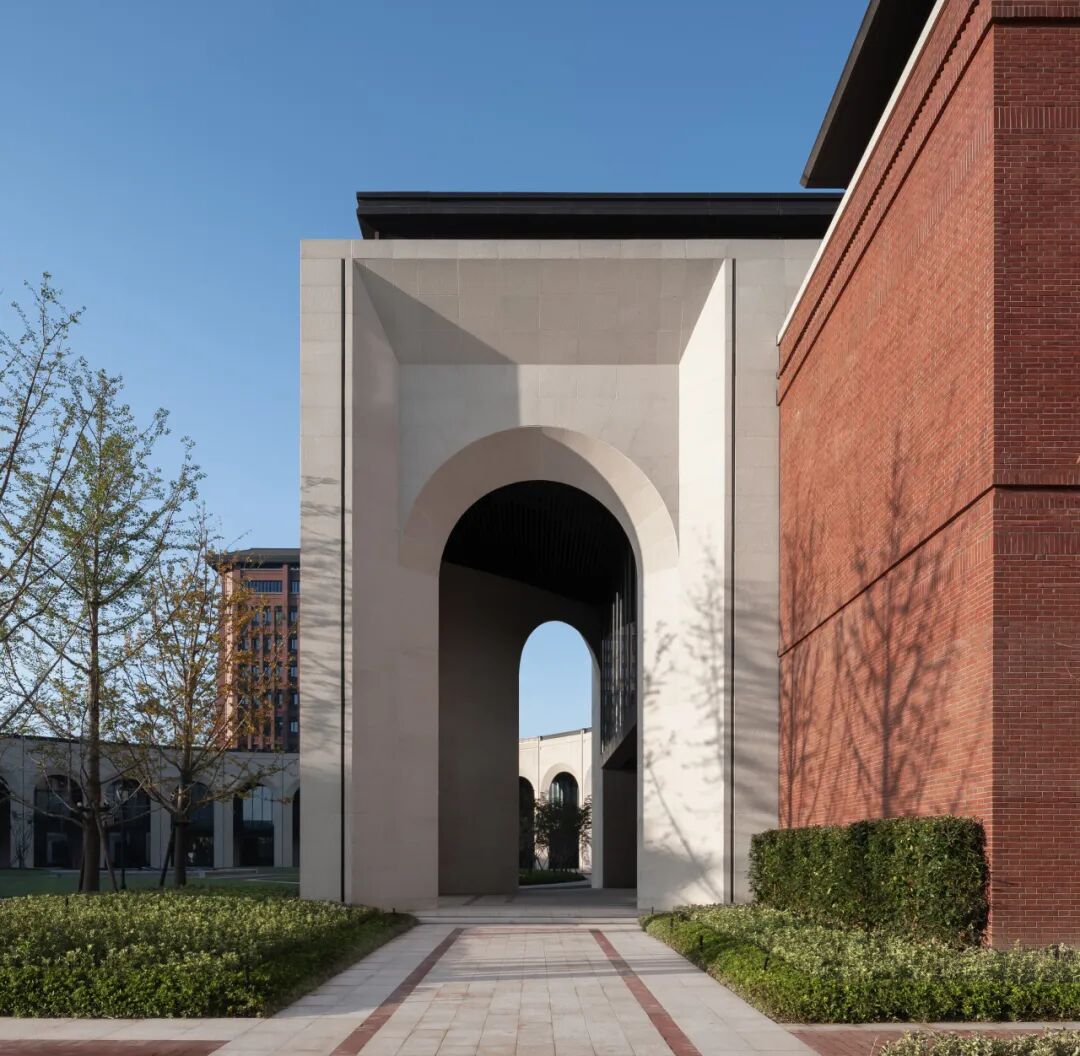 同时,设计采用“多维院落、立体景观”的策略实现了高容积率下花园式学院的“新”格局,中央绿地、围合庭院、滨水空间、屋顶花园等景观节点的整体设计为研究院提供了多层次的外部空间;而“砖石同构、写意在先”的建构策略在回应北航传统的同时也体现了时代特征,砖石和铝板玻璃等现代材料和谐共生,结合细部设计和创新,实现了传统材料的“新”演绎,北航历史文脉的“新”传承,整体项目整体呈现出卓越的质感和耐久的属性,实现打造百年校园的各方期许。